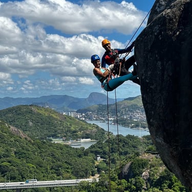 🧗🏻 Nunca fez rapel na vida? Não tem problema! Nós seremos bonzinhos 😌. Todos os aventureiros serão instruídos individualmente do início ao fim da atividade sobre a prática do rapel.