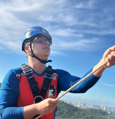 Aliando sua experiência como praticante de atividades de aventura às técnicas de ensino que estava aprendendo, reuniu o intitulado grupo NHS, composto originalmente por @fernando_csramos, @Suamuel Ferreira, @jackson.mocelin e @Camila Bertolano, onde trabalharam os diversos conteúdos das atividades em altura no estágio supervisionado, do ensino fundamental II. Um semestre depois, @amanda_furlam entrou para o time, que entregou tudo de melhor que possuíam e aprenderam no estágio do ensino médio.