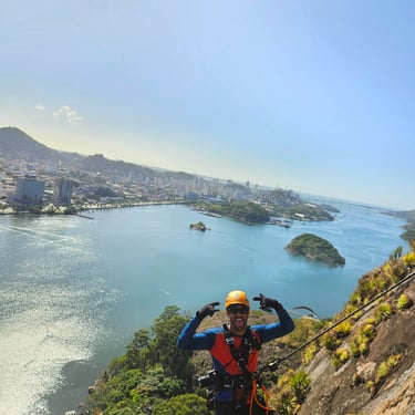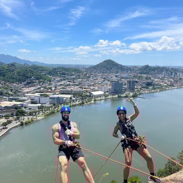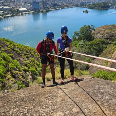 🧗🏻 Nunca fez rapel na vida? Não tem problema! Nós seremos bonzinhos 😌. Todos os aventureiros serão instruídos individualmente do início ao fim da atividade sobre a prática do rapel.